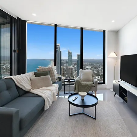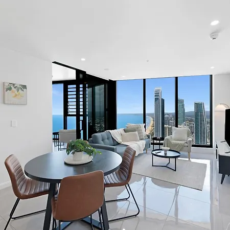 דירת 45Th-Floor Luxury Suite With Panoramic Ocean Views In Meriton שוכנת במחוז סרפרס פרדייז של העיר גולד קוסט וכוללת מקום שהייה עם מרכז כושר ובריכת שחייה.